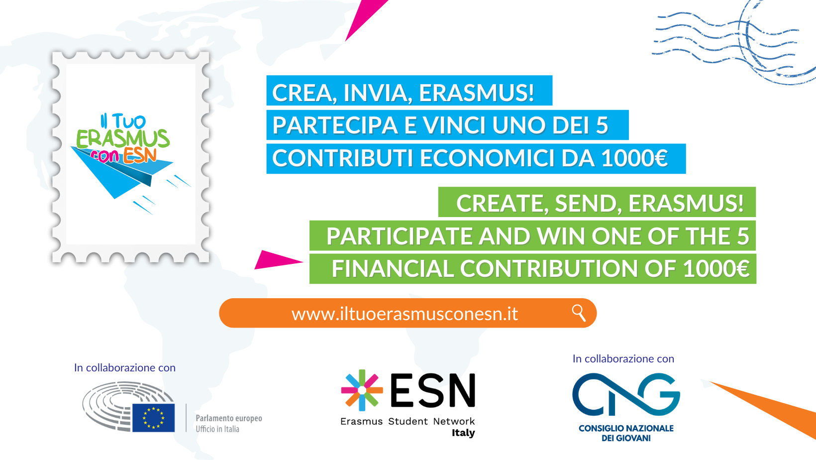 Il Contest ‘’Il Tuo Erasmus con ESN’’, giunto alla nona edizione, è uno dei progetti più importanti di ESN Italia ed ha l’obiettivo di fornire un ulteriore sostegno economico - che andrà a sommarsi a quello regolarmente erogato dalle università e dall'Unione Europea - agli studenti iscritti ad un Ateneo italiano in possesso della “Erasmus Charter for Higher Education” (ECHE) che sono risultati vincitori di una borsa Erasmus+ e/o di una borsa di mobilità per l’anno accademico 2021/22.
